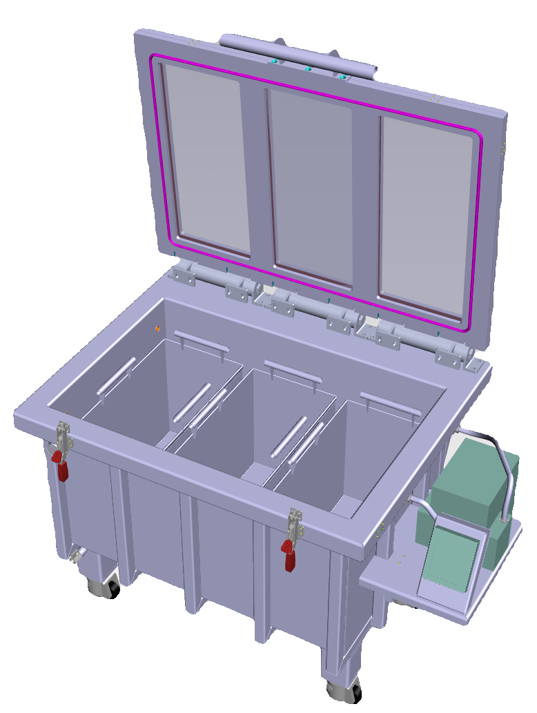 - Innenbehälter mit Griffen – Anzahl und Maße nach Kundenwunsch, erleichtert Einsetzen und Herausnehmen von Präparaten